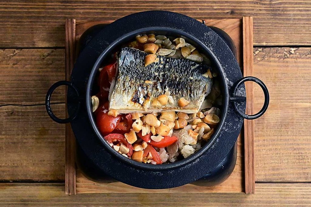 ちょっと最近ナッツの釜飯が個人的に流行りです。鯖の脂とナッツの食感がいい感じの釜飯(炊き込みご飯)ができました