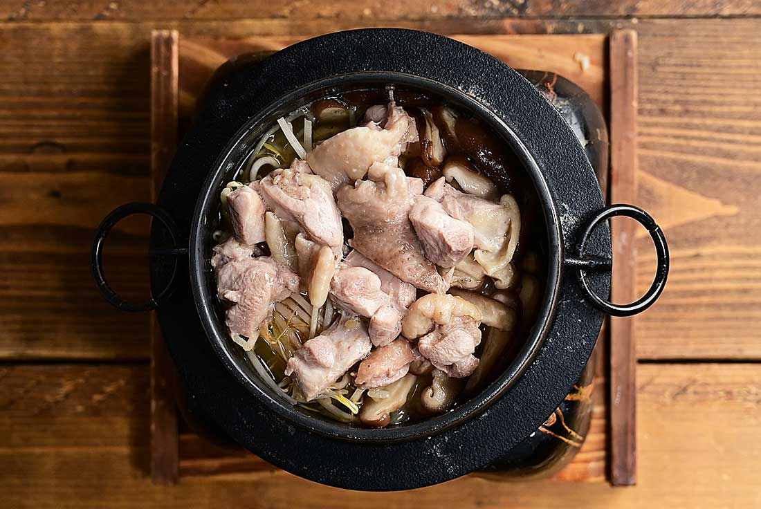 【土鍋の場合】:浸水させた米を土鍋に入れてから、とんこつ鍋スープ(ストレート)を180~200mlくらいを目安に入れる。(スープの量はお好みで調整してください)【A】の調味料等を加えて軽く混ぜ、シイタケ、もやし、鶏もも肉をのせる。鍋の蓋をした状態で中火にかけ、水が沸騰したら火を弱火にし15分くらいご飯を炊く。蓋を開けスープがなくなっていたら炊き上がり(蒸気が上がらなくなるタイミングが目安です)。